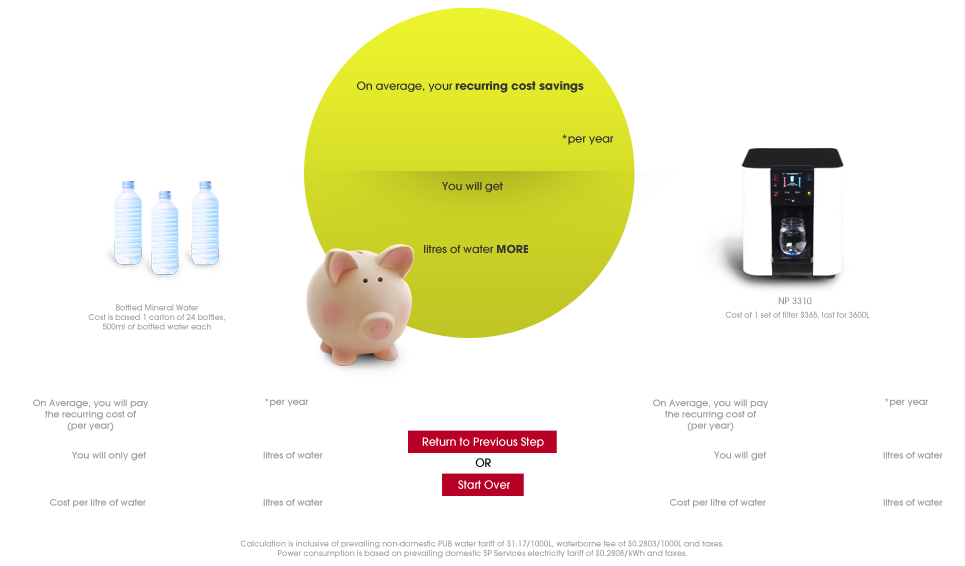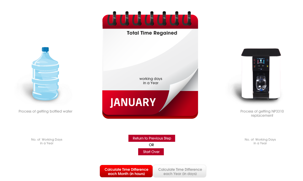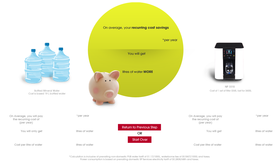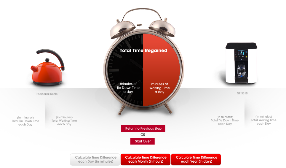 Key in the number of people, the amount of litres of water required per person as well as the capacity of your kettle.