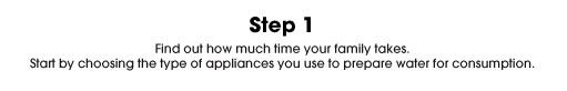Click to select the steps you take to prepare your drinking water. Mouse over the icons to see the time required for each step!